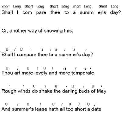 Shakespeare was infamous for his works to be inspired by other writers during his time. Geoffrey Chaucer created the iambic pentameter in the 1380s, but Shakespeare, Milton, and Wordsworth were more notorious for it. Iambic pentameter is a poetic device typically consisting of ten syllables, a decasyllabic verse, where a long syllable follows each short syllable. It creates a rhythm of *da DUM da DUM da DUM.* This poetic style resembles the natural speaking patterns of the English language. Some of the most infamous iambic pentameter quotes are "shall I compare thee to a summer's day,"(Shakespeare, Sonnet 18, pg. 1) "to be or not to be," (Shakespeare, Hamlet, III.I) or "if music be the food of love play on." (Shakespeare, Twelfth Night, pg. 1) Shakespeare's first sonnet and poem were written in 1592 and 1593. These were his first works, including this newly used writing device. Iambic pentameter sets a rhythm. This rhythm can help the plot advance by influencing the pacing of scenes, and it adds a sense of regularity to the language. This makes the piece flow, and it becomes more memorable. Shakespeare uses this speaking pattern to connect to a familiar language while entwining poetic elements to create a structural and formal poem.